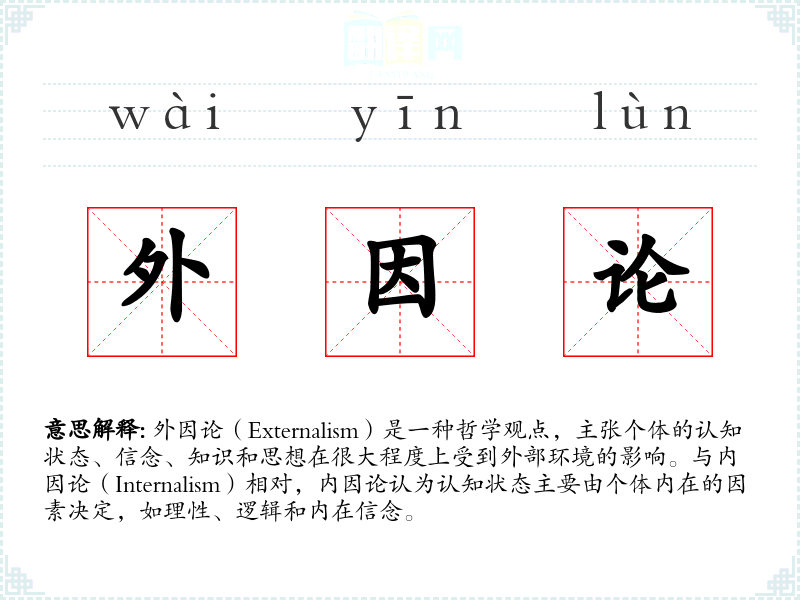 - 不同语言:在不同语言中,如英语的“Externalism”和中文的“外因论”,都强调外部环境对个体认知的影响。