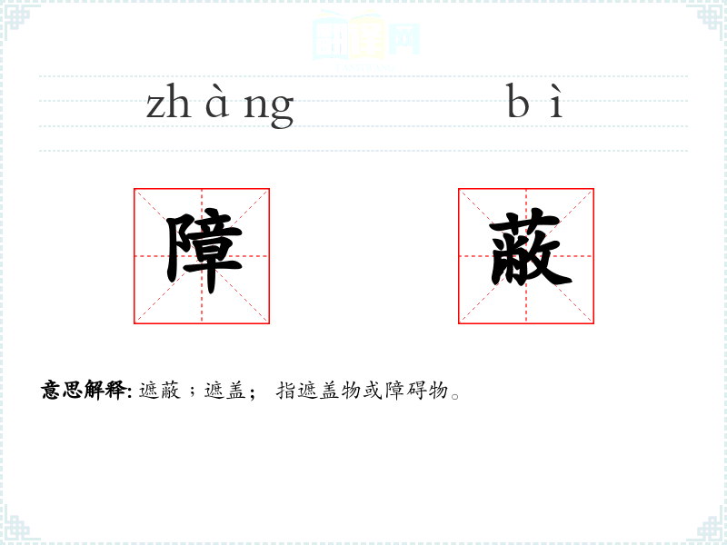 遮蔽﹔遮盖; 指遮盖物或障碍物。