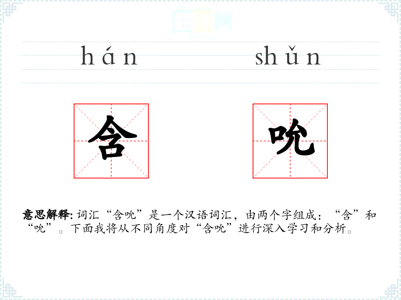 词汇“含吮”是一个汉语词汇,由两个字组成:“含”和“吮”。下面我将从不同角度对“含吮”进行深入学*和分析。