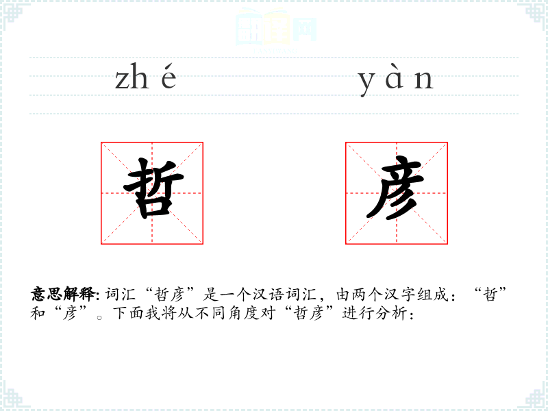 - 词源:“哲”源自古代汉语,意为智慧;“彦”也源自古代汉语,意为有才学的人。