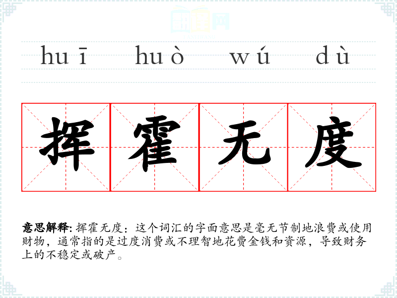 挥霍无度:这个词汇的字面意思是毫无节制地浪费或使用财物,通常指的是过度消费或不理智地花费金钱和资源,导致财务上的不稳定或破产。