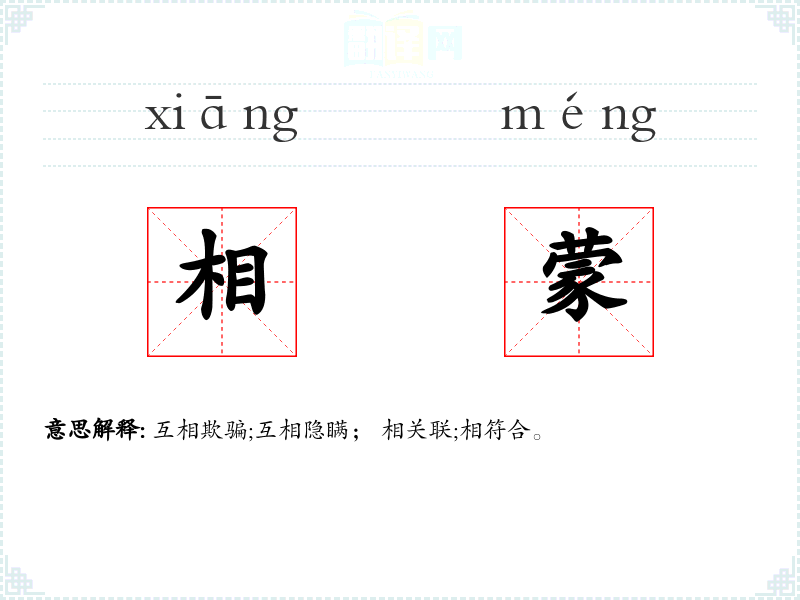 互相欺骗;互相隐瞒; 相关联;相符合。
