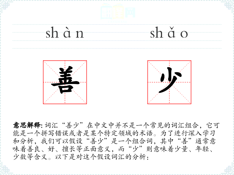 - 由于“善少”不是一个标准词汇,它的词源和演变无从考证。