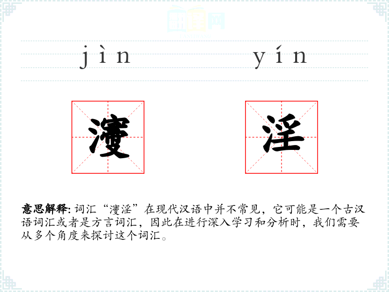 词汇“濅淫”在现代汉语中并不常见,它可能是一个古汉语词汇或者是方言词汇,因此在进行深入学习和分析时,我们需要从多个角度来探讨这个词汇。