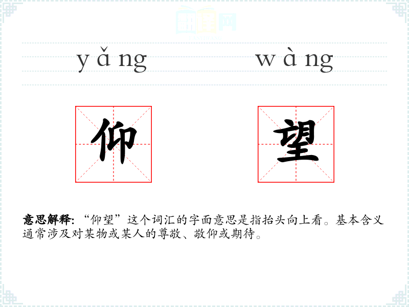 “仰望”一词源自古代汉语,其中“仰”意为抬头,“望”意为看。随着时间的推移,其含义逐渐丰富,从简单的物理动作扩展到情感和心理层面。