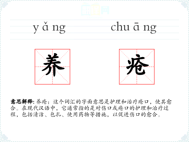 养疮 这个词在语言学和表达中具有重要性,它不仅涉及医学知识,还与人文关怀紧密相关。通过学和理解这个词,我们可以更好地掌握如何细致地照顾他人和自己,以及如何在语言中表达这种关怀和耐心。