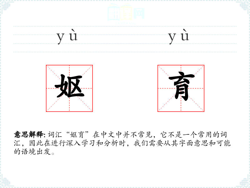 词汇“妪育”在中文中并不常见,它不是一个常用的词汇,因此在进行深入学*和分析时,我们需要从其字面意思和可能的语境出发。