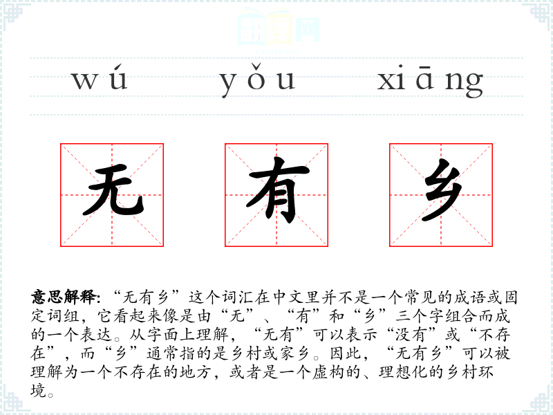 由于“无有乡”不是一个标准词汇,它的词源和演变不太明确。它可能是由个人创造或从某些文学作品中衍生出来的表达。