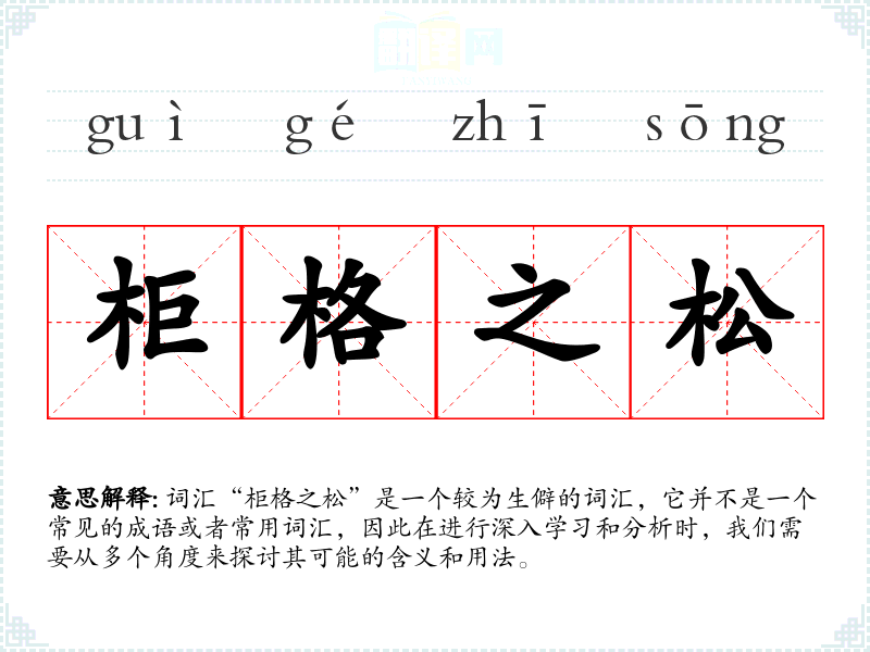 词汇“柜格之松”是一个较为生僻的词汇,它并不是一个常见的成语或者常用词汇,因此在进行深入学*和分析时,我们需要从多个角度来探讨其可能的含义和用法。
