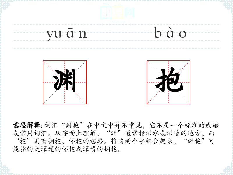 在中华文化中,“渊”常与深邃、博大相联系,如“渊博”形容知识广博。而“抱”则常与情感、怀抱相关。因此,“渊抱”可能在文化上被理解为一种深沉且宽广的情感表达。