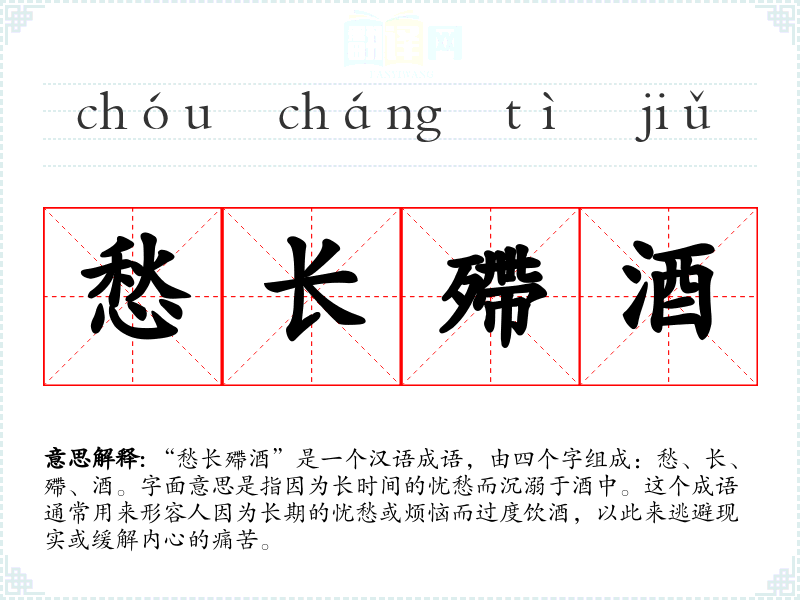 “愁长殢酒”这个成语的词源较为模糊,但它反映了古代文人对于忧愁和酒精关系的深刻理解。随着时间的推移,这个成语的使用逐渐固定下来,成为描述长期忧愁导致过度饮酒的典型表达。
