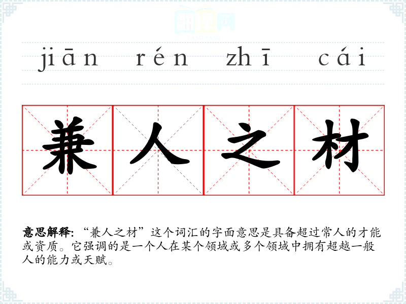 “兼人之材”这个词汇的字面意思是具备超过常人的才能或资质。它强调的是一个人在某个领域或多个领域中拥有超越一般人的能力或天赋。