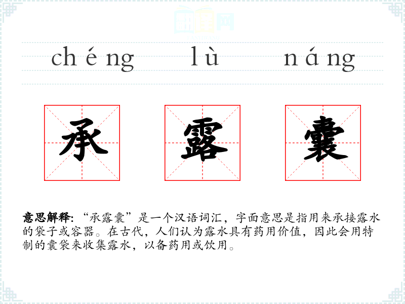 "承露囊"的意思解释、承露囊是什么意思由翻译网汉语词典查词提供。