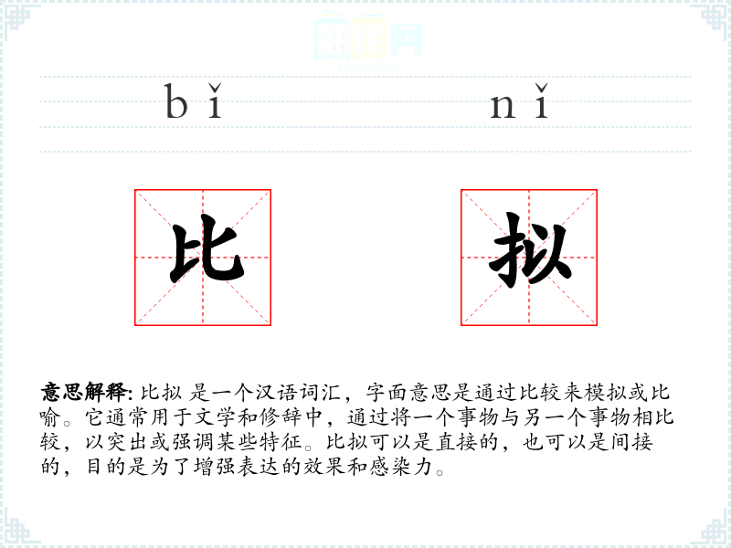 比拟一词源于古代汉语,其使用可以追溯到《诗经》中的赋比兴手法。随着时间的推移,比拟在文学和日常语言中的使用逐渐丰富和多样化,成为汉语表达中不可或缺的一部分。