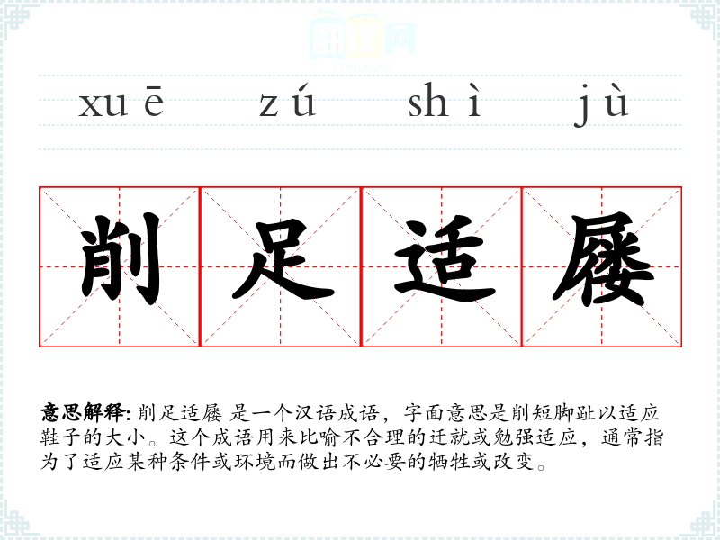 削足适屦 这个成语深刻地揭示了在适应环境和坚持自我之间寻找平衡的重要性。在我的语言学*和表达中,这个成语提醒我要保持自己的独立思考,同时也要学会在必要时做出合理的妥协。