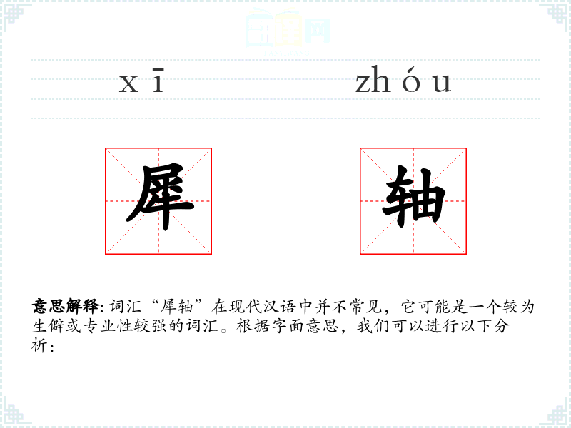 词汇“犀轴”在现代汉语中并不常见,它可能是一个较为生僻或专业性较强的词汇。根据字面意思,我们可以进行以下分析: