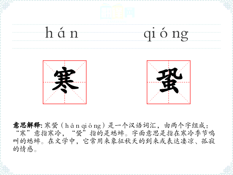 - 专业领域:在昆虫学或自然科学领域,可能会提及“寒蛩”作为特定季节性昆虫的描述。