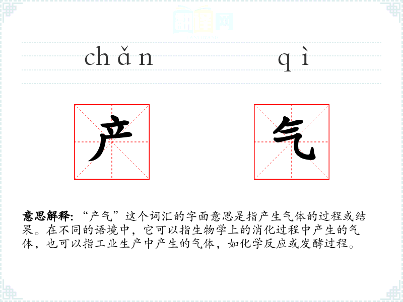 “产气”这个词汇在中文中是一个复合词,由“产”和“气”两个字组成。在古代汉语中,“产”有产生、生产的意思,“气”则指气体。随着语言的发展,这个词汇被广泛应用于描述各种产生气体的过程。