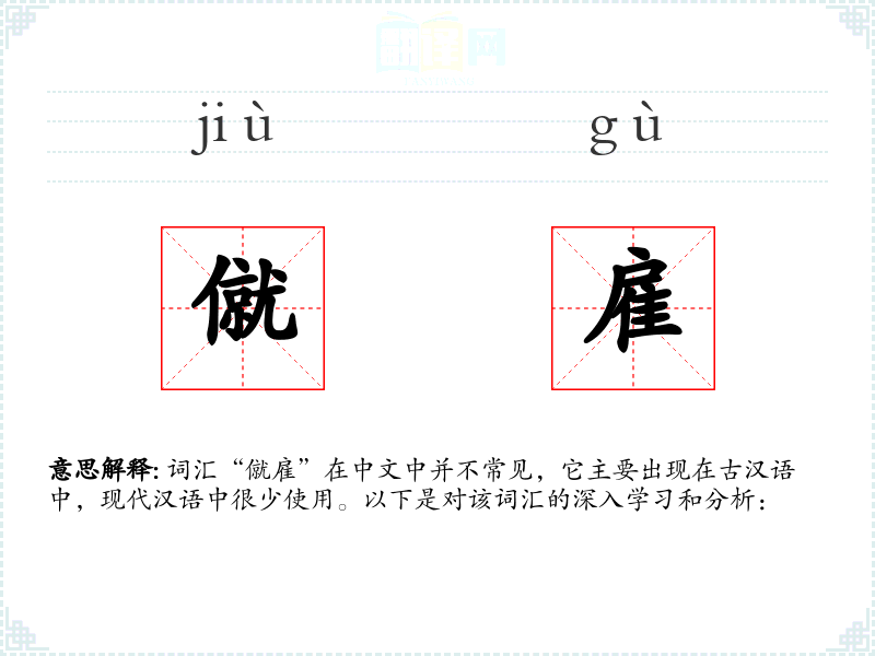 词汇“僦雇”在中文中并不常见,它主要出现在古汉语中,现代汉语中很少使用。以下是对该词汇的深入学习和分析: