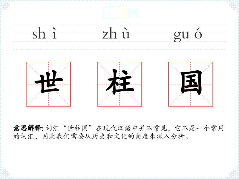 词汇“世柱国”在现代汉语中并不常见,它不是一个常用的词汇,因此我们需要从历史和文化的角度来深入分析。