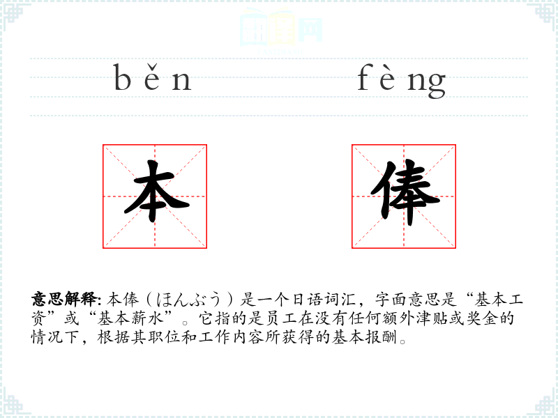 本俸这个词源于日语,由“本”(基本)和“俸”(薪水)组成。在现代日语中,这个词的使用相对正式,主要在职场和官方文件中出现。