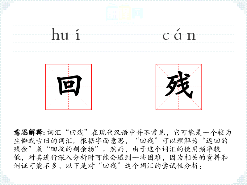"回残"的意思解释、回残是什么意思由翻译网汉语词典查词提供。