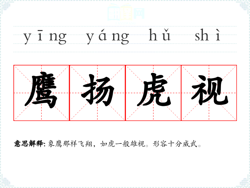 象鹰那样飞翔,如虎一般雄视。形容十分威武。