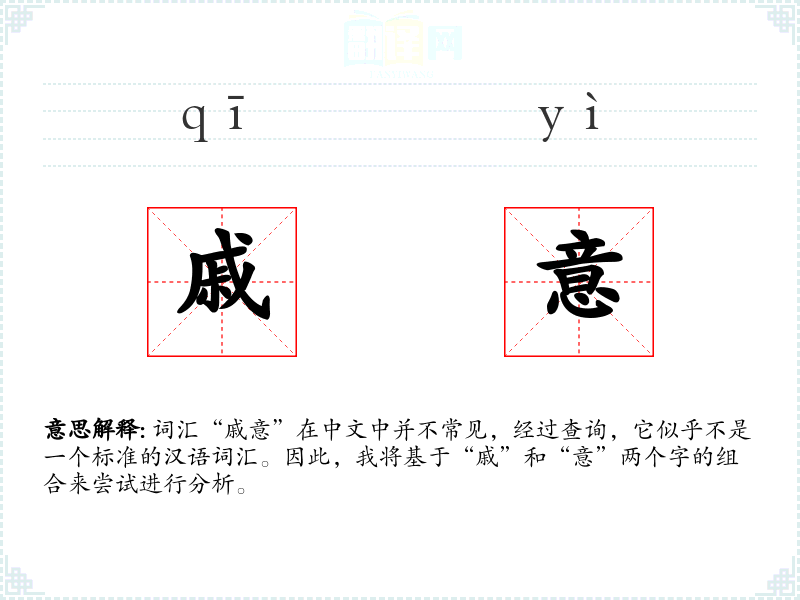 词汇“戚意”在中文中并不常见,经过查询,它似乎不是一个标准的汉语词汇。因此,我将基于“戚”和“意”两个字的组合来尝试进行分析。