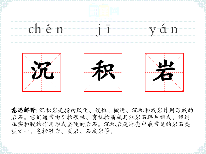 沉积岩一词源于拉丁语“depositum”,意为“放置”或“存放”,反映了沉积岩形成过程中物质的沉积和存放过程。随着地质学的发展,这一词汇逐渐被用于描述特定的岩石类型和形成机制。