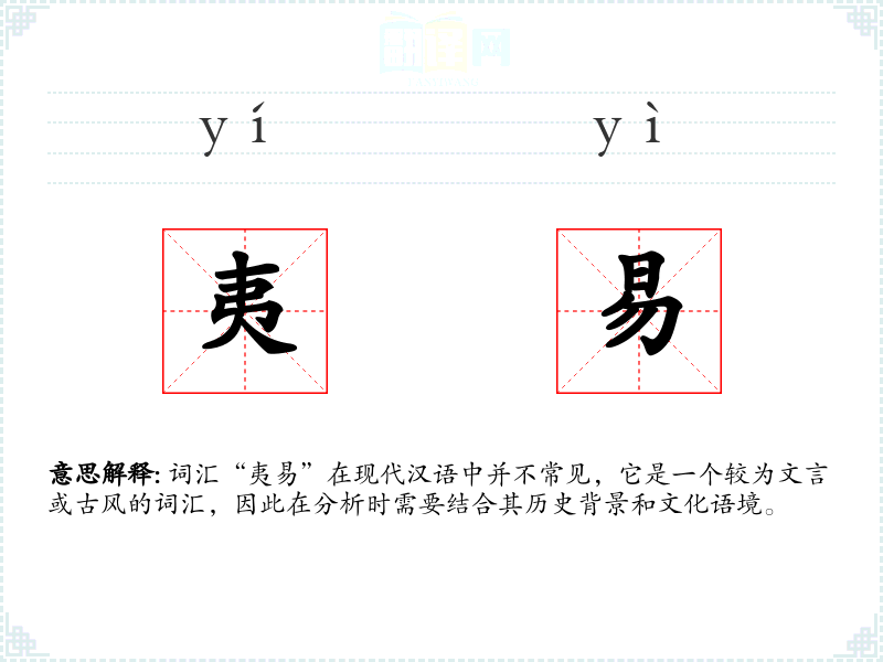词汇“夷易”在现代汉语中并不常见,它是一个较为文言或古风的词汇,因此在分析时需要结合其历史背景和文化语境。