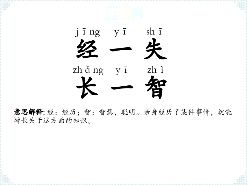 经:经历;智:智慧,聪明。亲身经历了某件事情,就能增长关于这方面的知识。