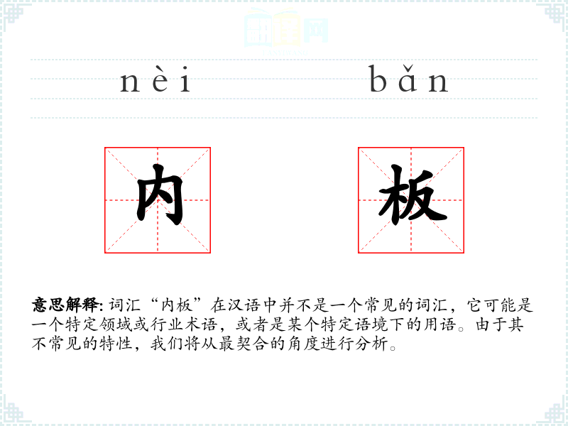 词汇“内板”在汉语中并不是一个常见的词汇,它可能是一个特定领域或行业术语,或者是某个特定语境下的用语。由于其不常见的特性,我们将从最契合的角度进行分析。