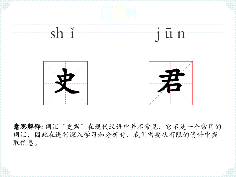- 在古代文献中,“史君”常被用来尊称那些精通历史的学者。