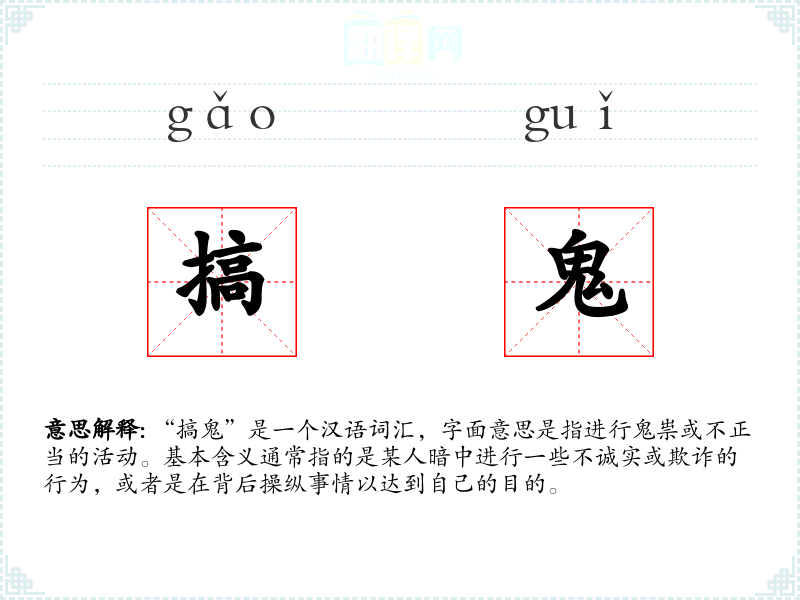 在中国文化中,“鬼”通常与负面或不祥的含义相关联。因此,“搞鬼”这个词也带有强烈的负面色彩,常常用来描述那些不诚实或不道德的行为。