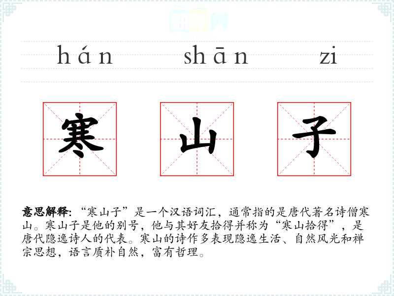 “寒山子”一词源于唐代,寒山是他的法号,“子”是对有学问或德行的人的尊称。随着时间的推移,“寒山子”成为了指代这位诗僧的专有名词,并在文学和禅宗研究中被广泛使用。