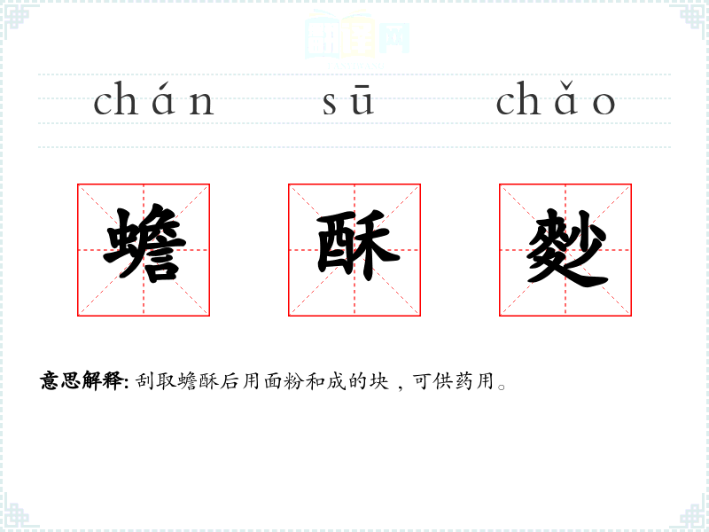 蟾酥麨的分字解释