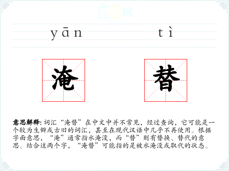 "淹替"的意思解释、淹替是什么意思由翻译网汉语词典查词提供。