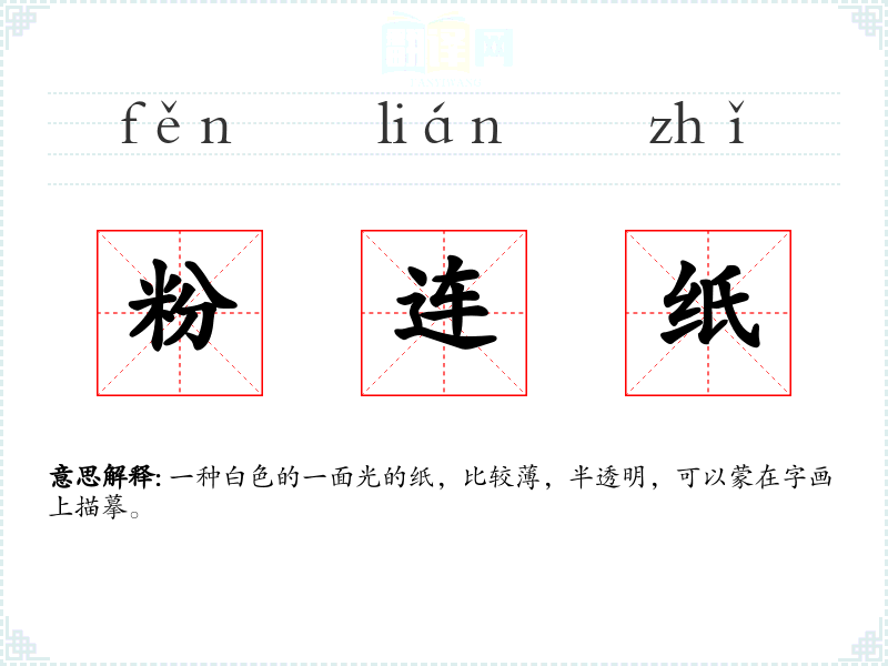 一种白色的一面光的纸,比较薄,半透明,可以蒙在字画上描摹。