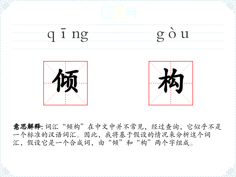 词汇“倾构”在中文中并不常见,经过查询,它似乎不是一个标准的汉语词汇。因此,我将基于假设的情况来分析这个词汇,假设它是一个合成词,由“倾”和“构”两个字组成。