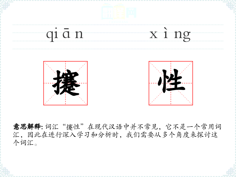 词汇“攓性”在现代汉语中并不常见,它不是一个常用词汇,因此在进行深入学习和分析时,我们需要从多个角度来探讨这个词汇。