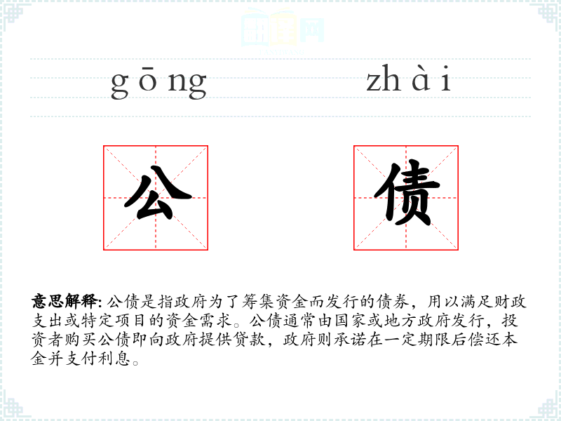 公债作为一个经济和金融术语,对于理解政府的财政政策和投资决策具有重要意义。在语言学习和表达中,掌握公债的概念有助于更深入地分析和讨论相关话题。