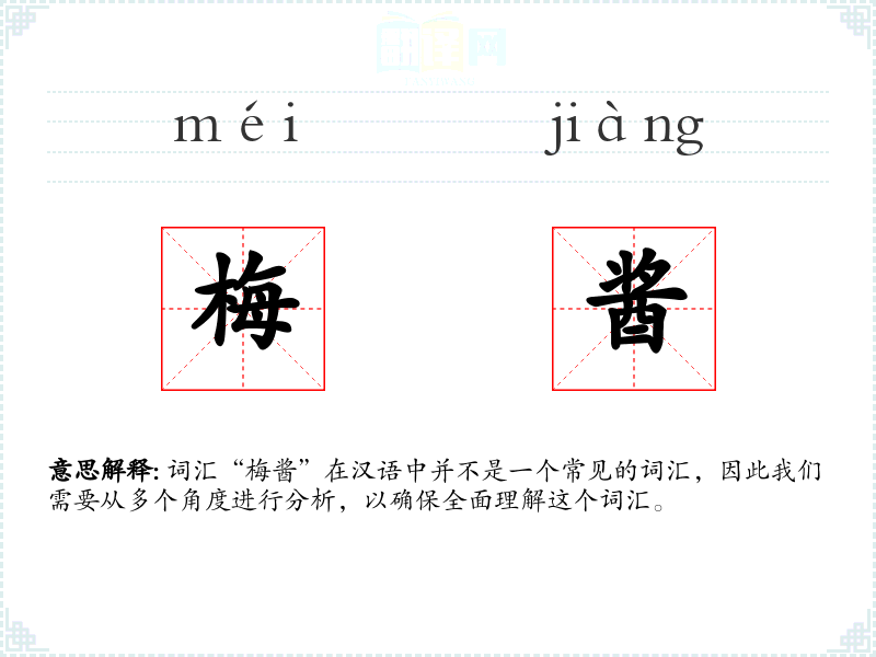 词汇“梅酱”在汉语中并不是一个常见的词汇,因此我们需要从多个角度进行分析,以确保全面理解这个词汇。