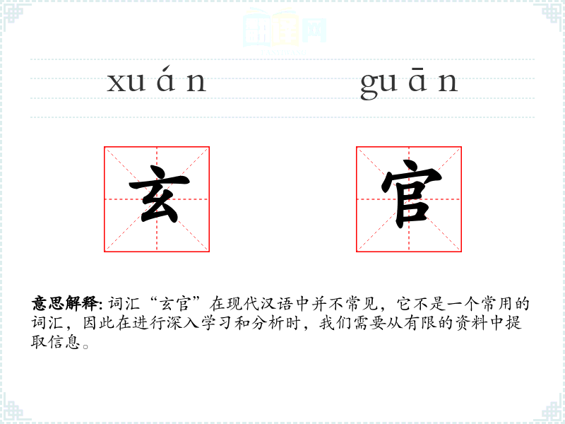 词汇“玄官”在现代汉语中并不常见,它不是一个常用的词汇,因此在进行深入学*和分析时,我们需要从有限的资料中提取信息。