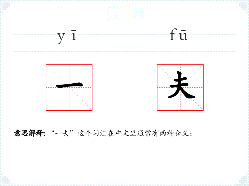 - 文学:在文学作品中,“一夫”可能用来描述一个男性的角色,或者在讨论婚姻制度时提及。
