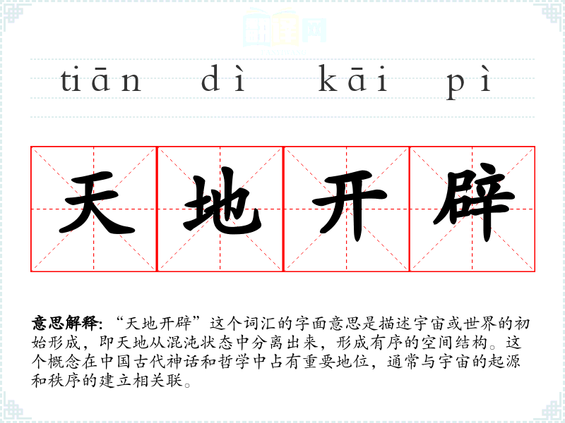 “天地开辟”这个词汇源自**古代的宇宙观和神话传说。随着时间的推移,这个词汇的含义逐渐丰富,不仅限于字面上的宇宙形成,还扩展到比喻性的新事物的诞生或重大变革的发生。