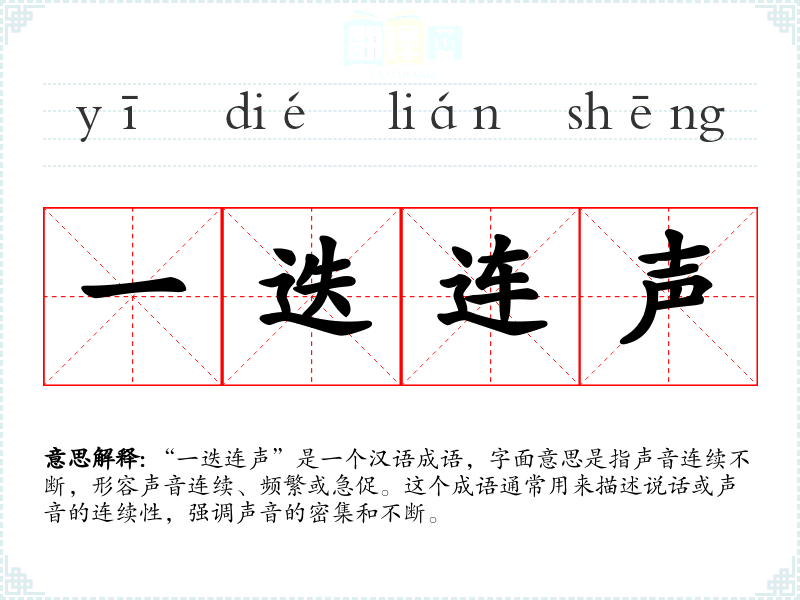 "一迭连声"的意思解释、一迭连声是什么意思由翻译网汉语词典查词提供。