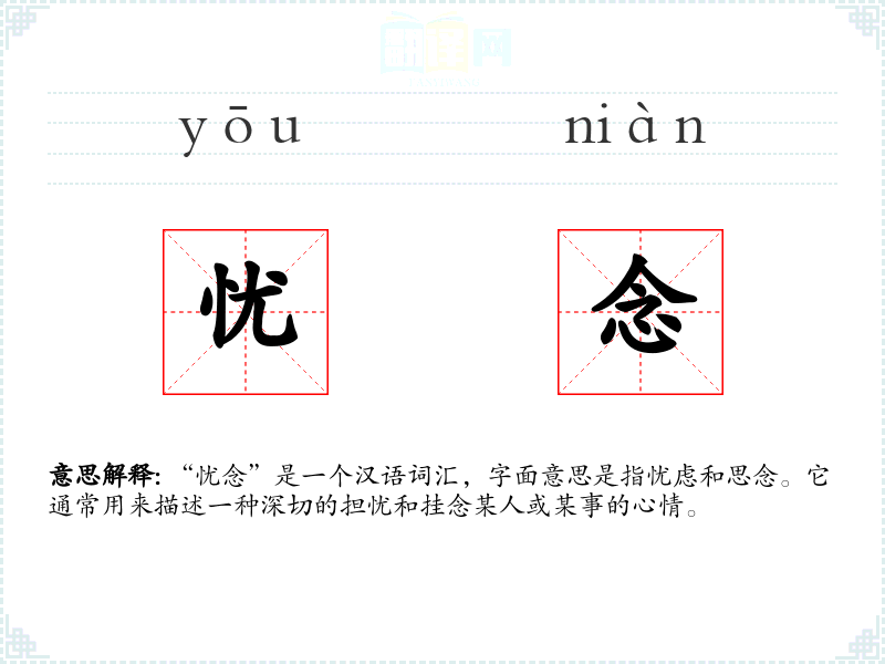 - 同义词:忧虑、挂念、担心、焦虑