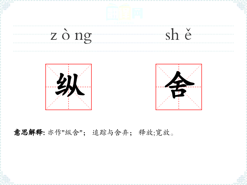 亦作"纵舍"; 追踪与舍弃; 释放;宽放。