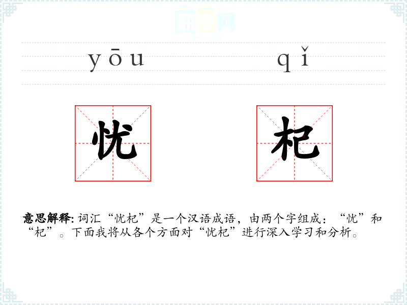 - 文学:在文学作品中,“忧杞”常用来形容人物的多虑或不必要的担忧,如“他总是忧杞,担心一些根本不会发生的事情。”