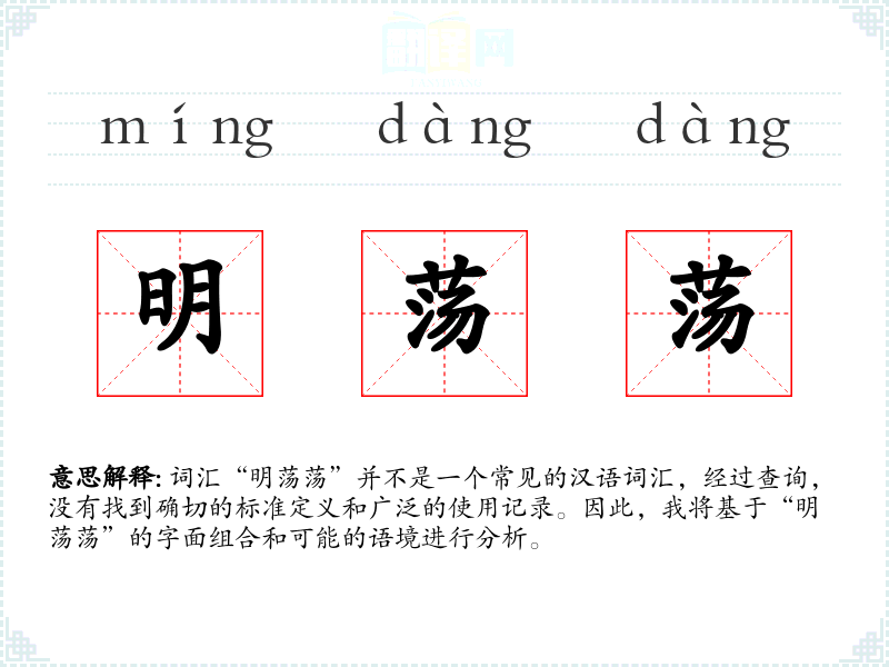 由于“明荡荡”不是一个常见词汇,它在不同语言或文化中的对应词汇可能不存在。